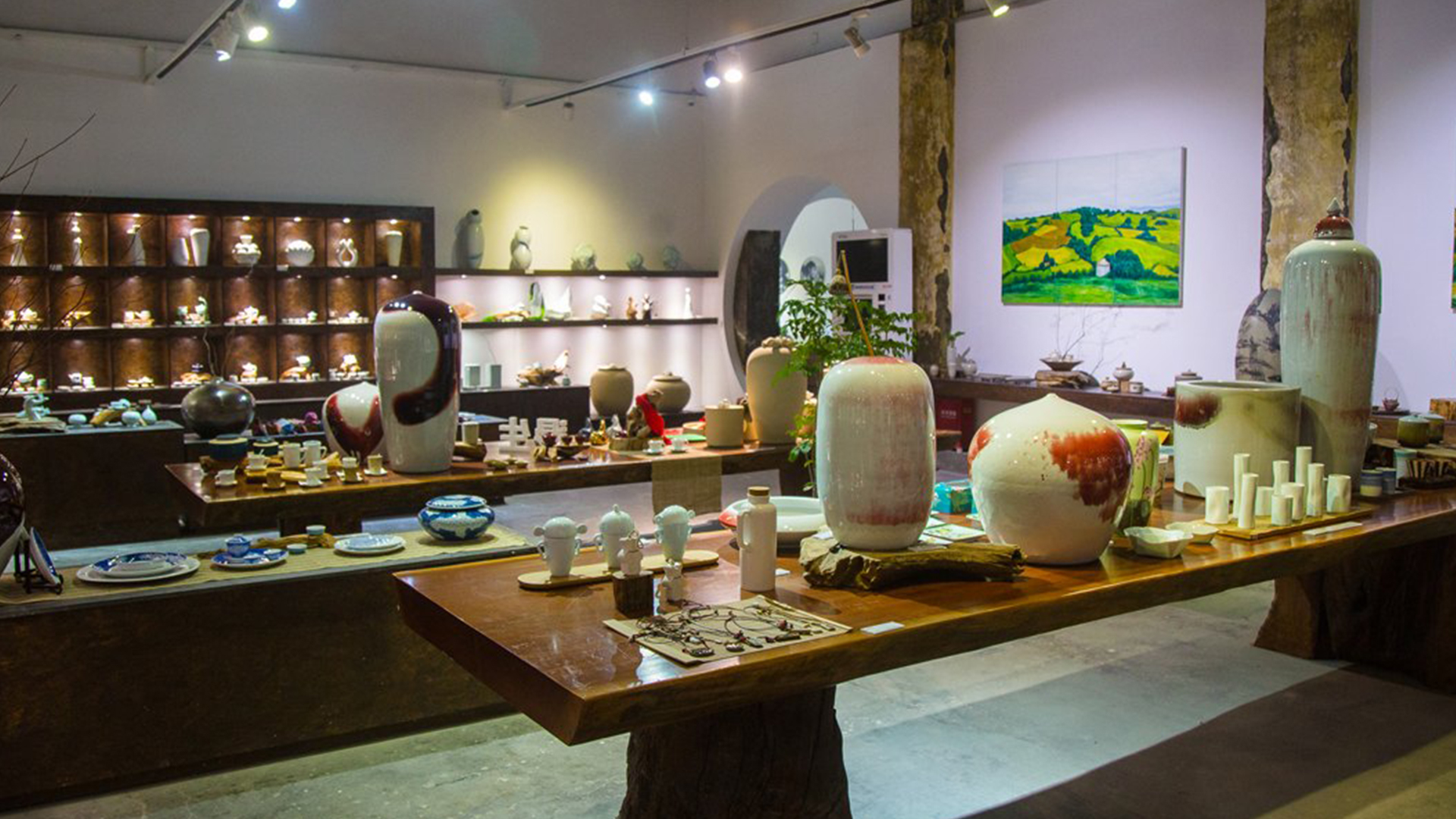 不爭論,不辯解,不過分堅持,讓本性自然釋放,也許有一天我們還會走向自己的反面。如果說平衡是世界的本來面貌,那么節(jié)制就是自我的修行。在欲望似乎沒有盡頭的今天,節(jié)制便顯得彌足珍貴。此項目運中江南園林中曲徑通幽之形,設(shè)計在方寸之間強化了藝術(shù)瓷器的雅致特別,進入后為一個集展示、零售、體驗及咖啡的綜合空間。一扇木門、一個櫥窗、一個景窗、一個圓形門廊,以多樣含蓄的方式與藝術(shù)對話。